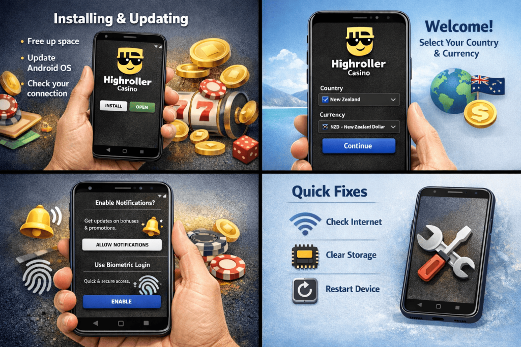 Installing the Highroller Casino Android app usually takes only a few minutes. Download the app from the official source and follow the on-screen steps. Updates are released regularly to improve performance and security, and installing the latest version is strongly recommended.