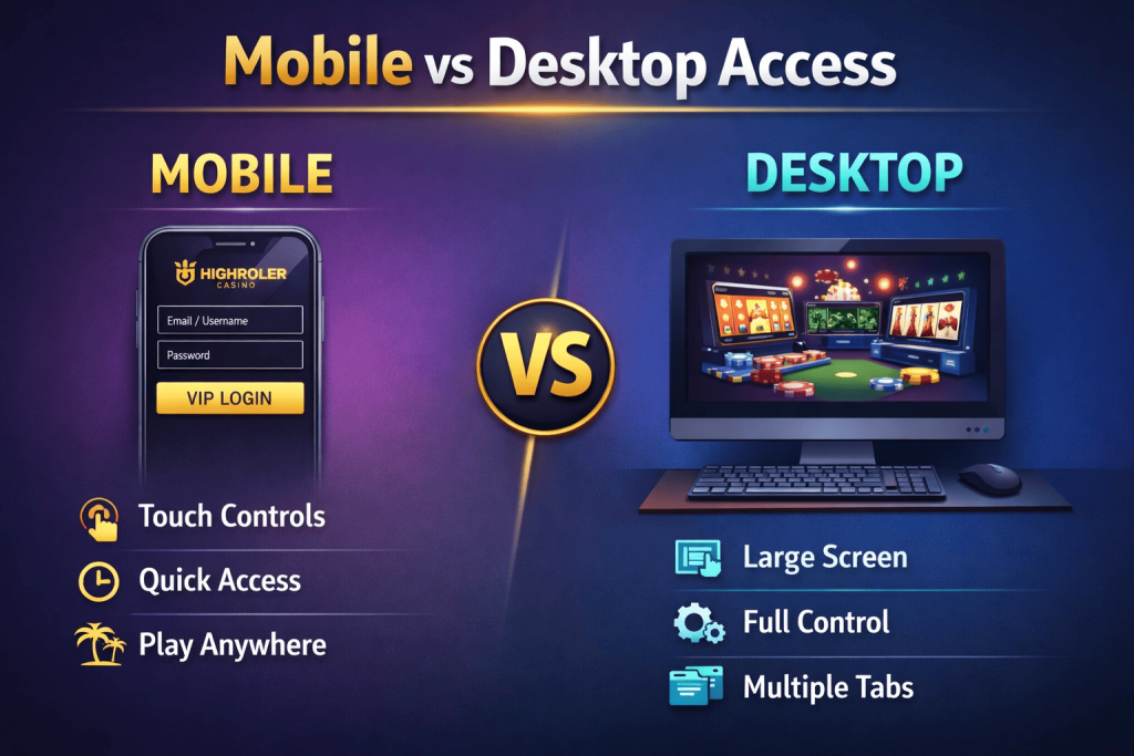 Mobile login at Highroller Casino is designed for speed. Pages load quickly even on mobile networks, and the simplified layout reduces the number of steps required to enter the account. This makes mobile login especially practical for players who want instant access to games, bonuses, or account settings without delays.