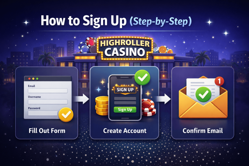 Sign Up at Highroller Casino is the process that allows new players to create a personal casino account and become registered members of the platform. During registration, players provide basic details such as an email address, username, and password, which are used to create secure login credentials. Completing the sign up process unlocks full access to casino features, including real-money games, bonuses, promotions, and account management tools.